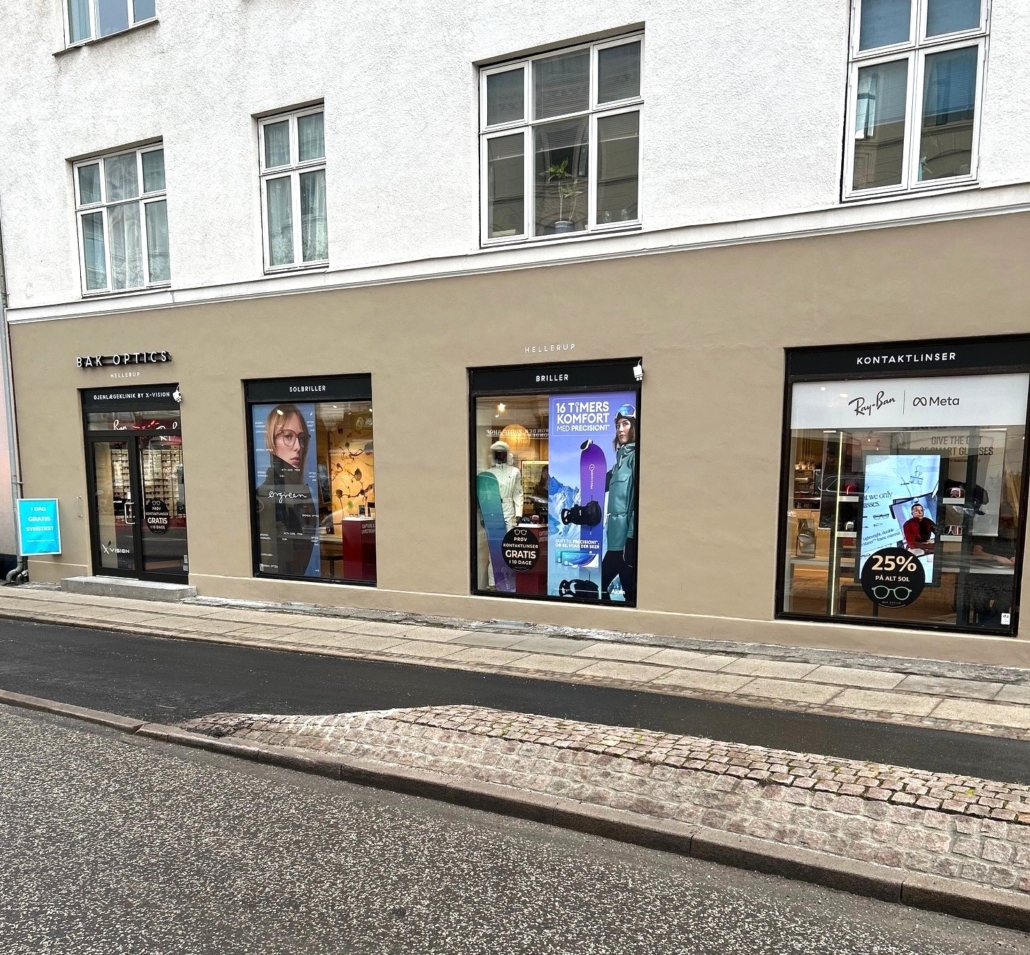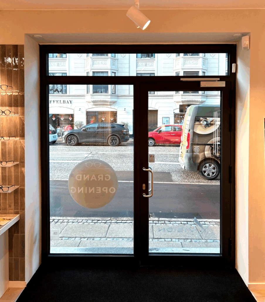 Med den nye sikkerhedsfacade har Bak Optics fået en moderne og funktionel butiksfront, der: