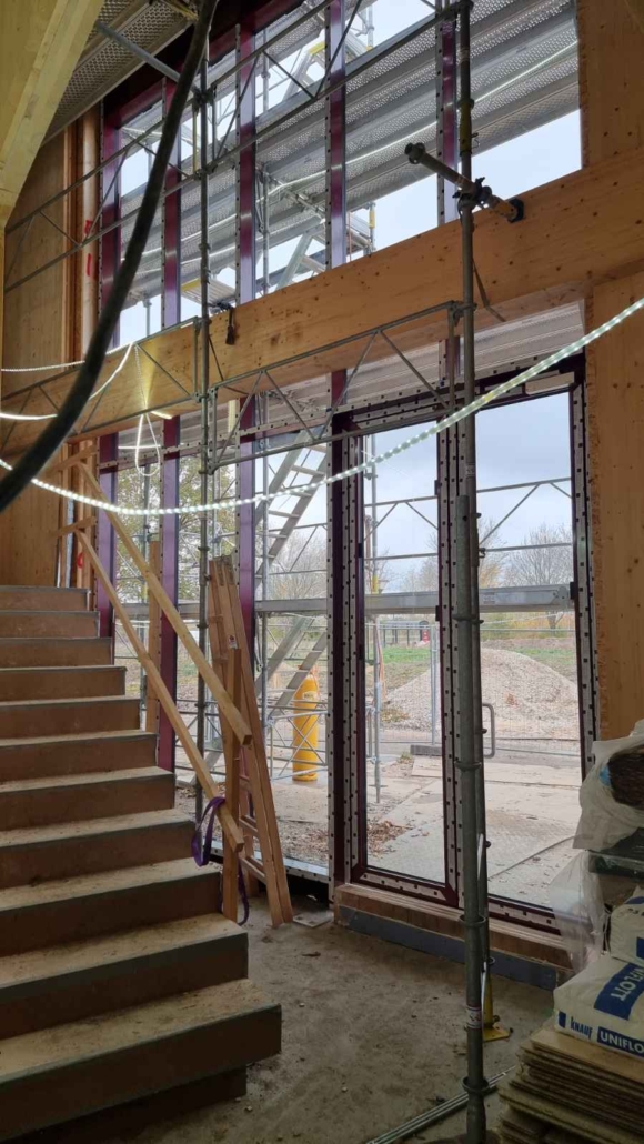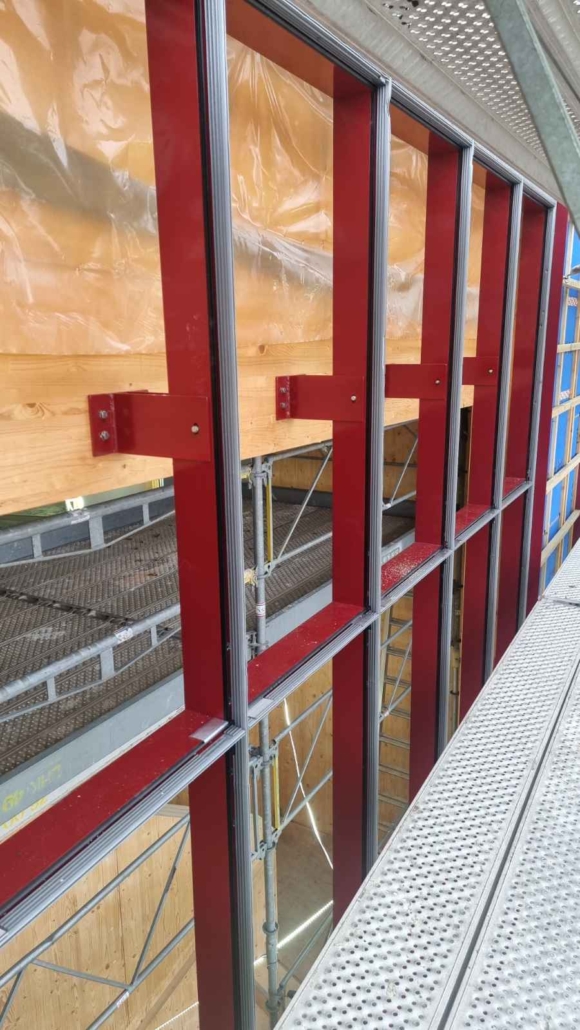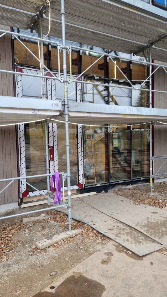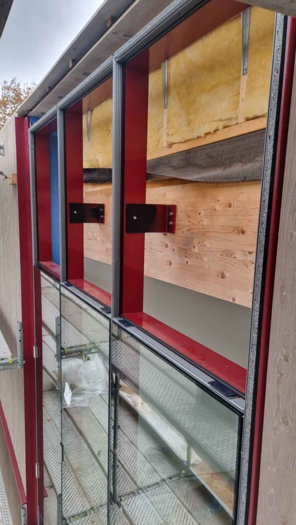 Fazade A/S har leveret og monteret glasfacader og dørpartier til projektet, som med sin markante purpurrøde farve skaber en kontrast til træfacaden og tilfører bygningen et karakteristisk og moderne udtryk.